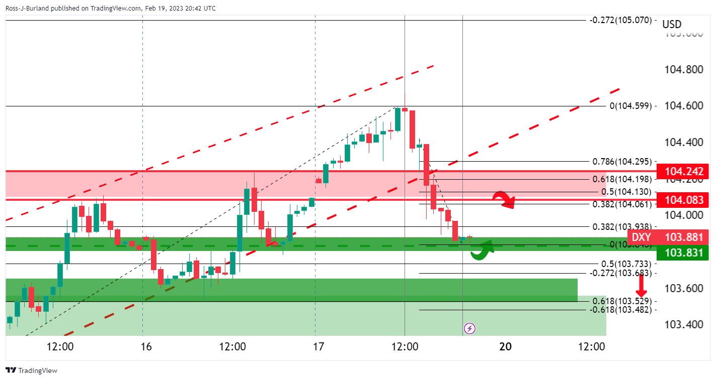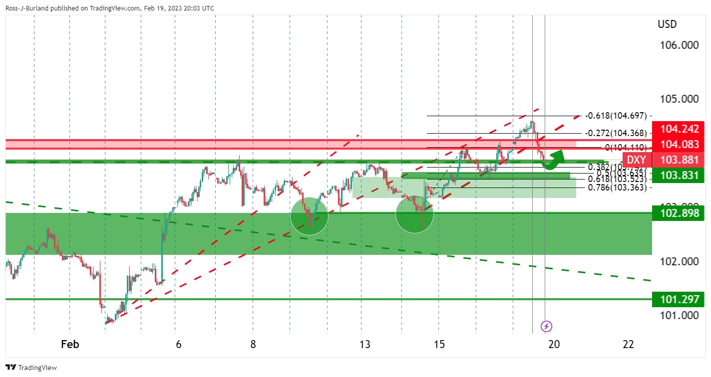 以美元指数衡量的美元上周五大幅下跌,上图和下图显示美元可能会出现在被视為支撑区域附近展??整理: