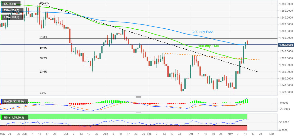 金价依然小幅承压,空头徘徊于200EMA均缐1760美元附近以重拾控制权。