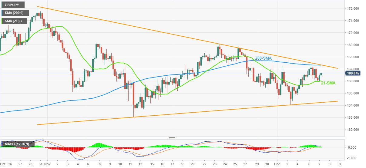 - MACD信号看涨,英镑/日元自21-SMA持续反弹对多头有利。