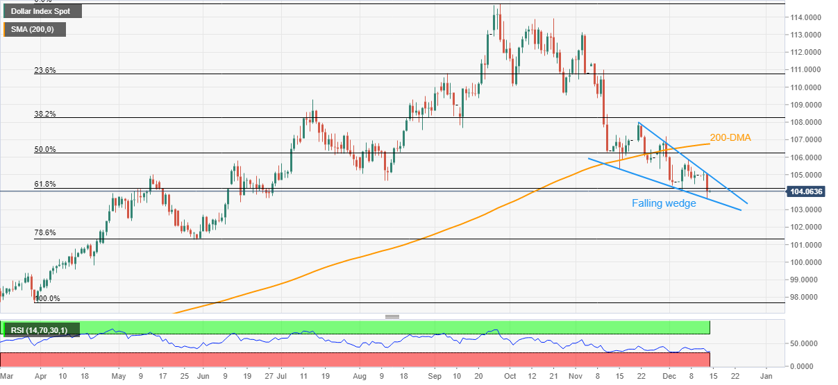 - 美元指数自六个月低点反弹,维持在下跌的楔形看涨形态内。
