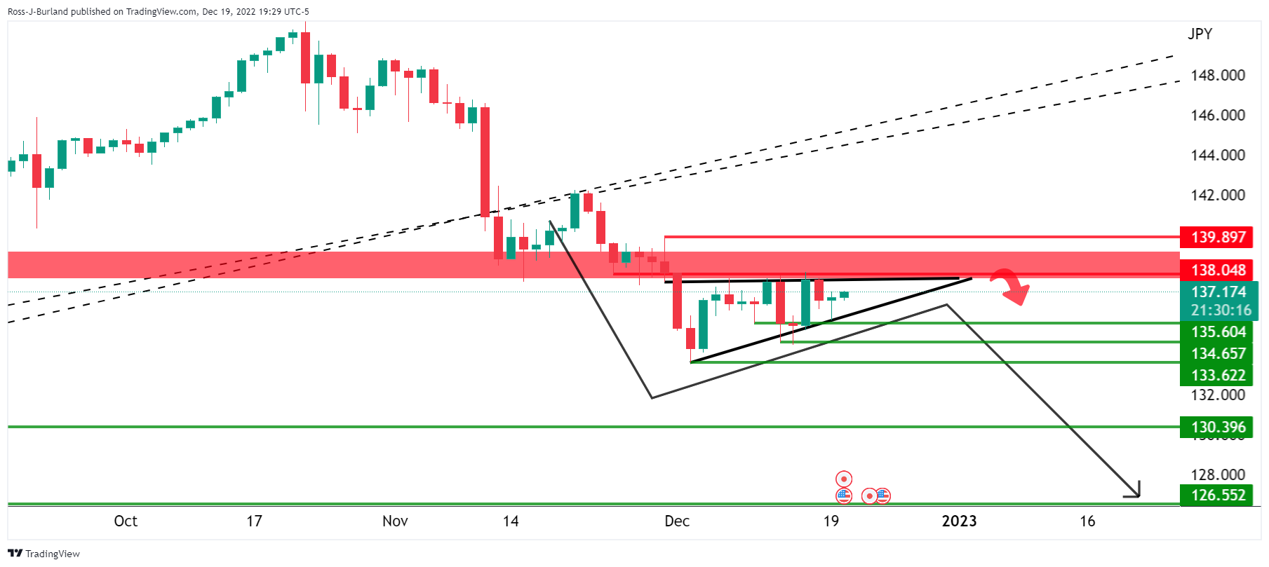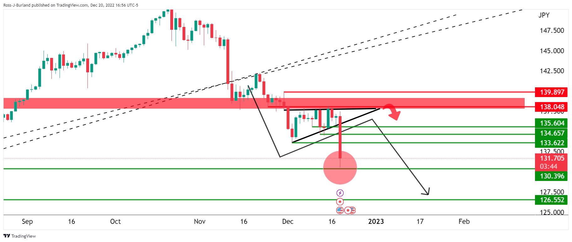空头接近第一个目标130.50附近。美元/日元将自这个关键水平下跌,接近129.50,然后是126.50,即便预期美元/日元将在这个过程中出现一些波动。