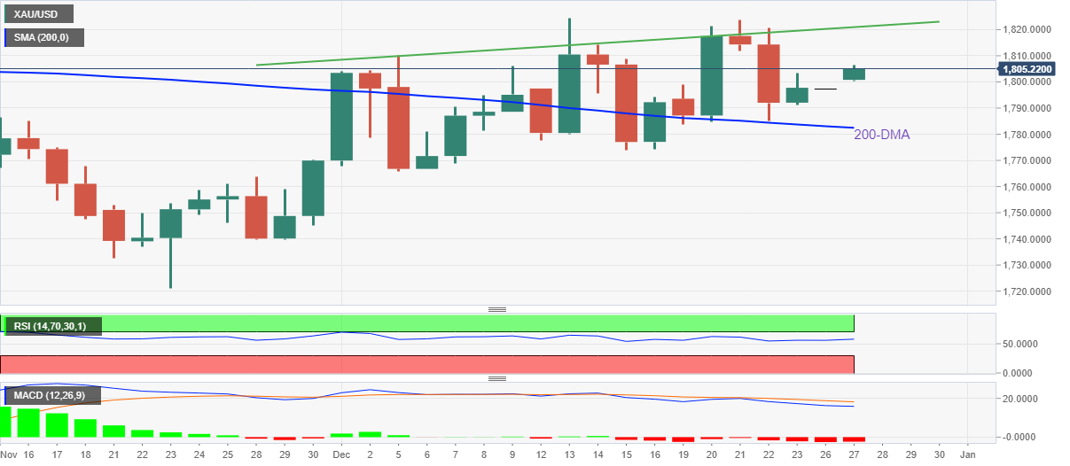 金价展望:黄金/美元自200日MA的反弹消退,因假期季美元反弹