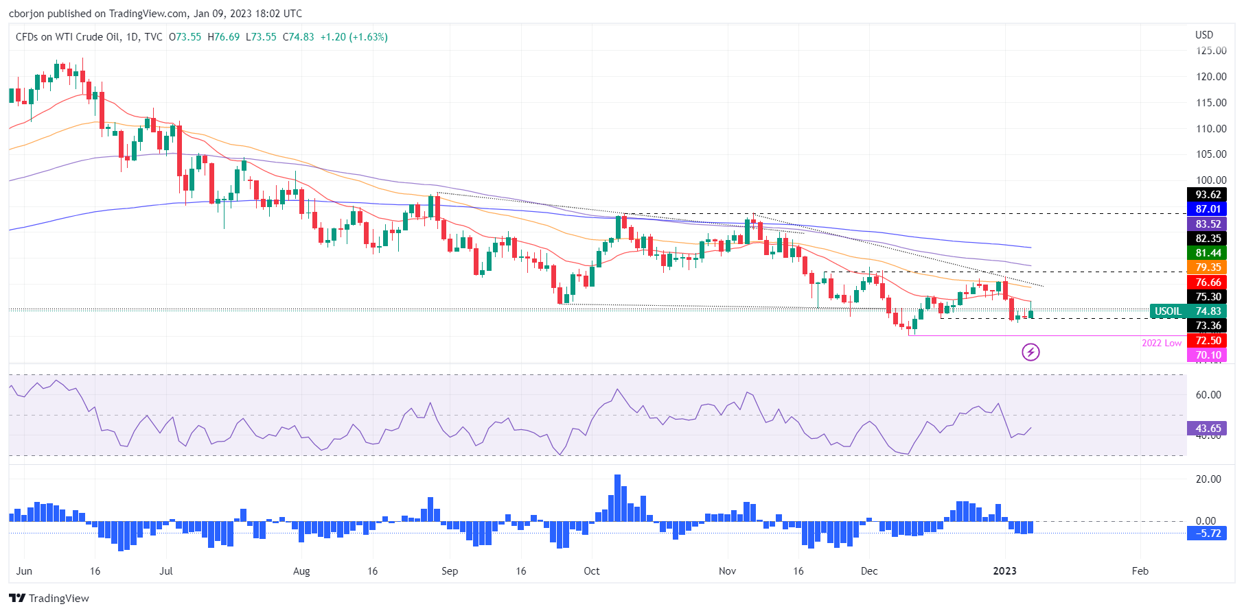 继中国??放边境后,WTI油价攀升后持稳于74.80美元附近