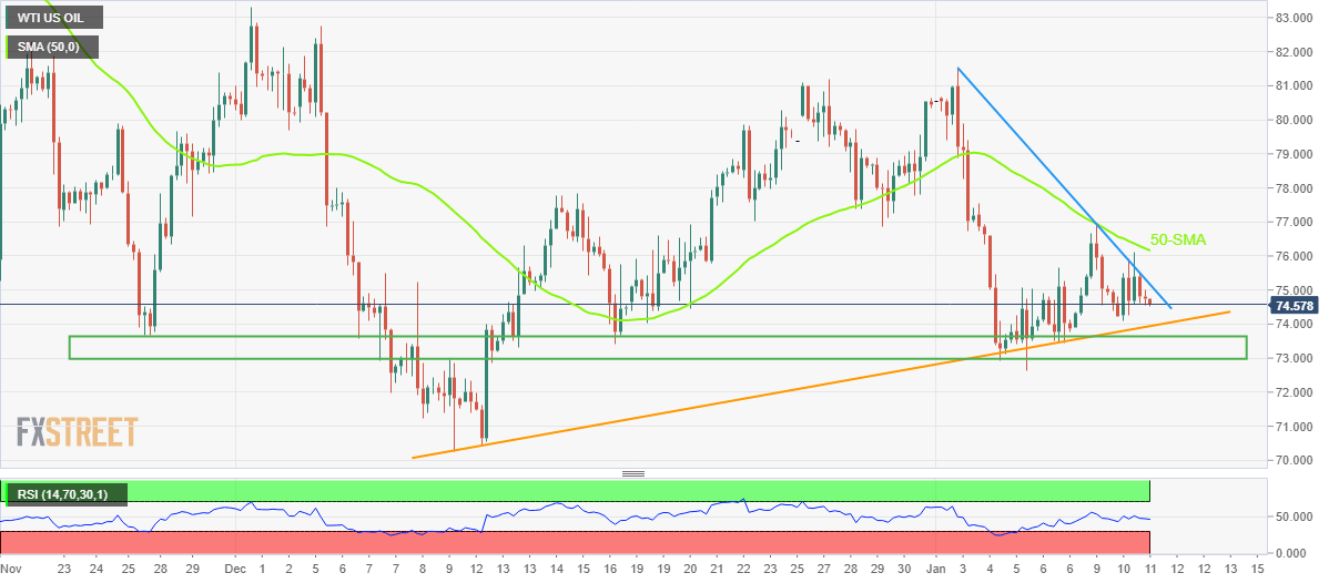 WTI原油价格分析:跌向74美元附近的月度支撑位