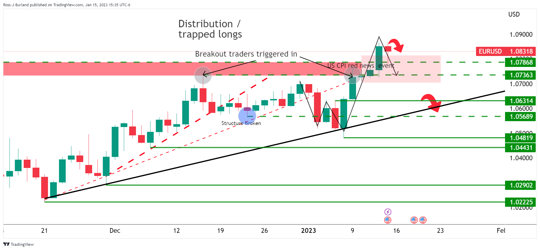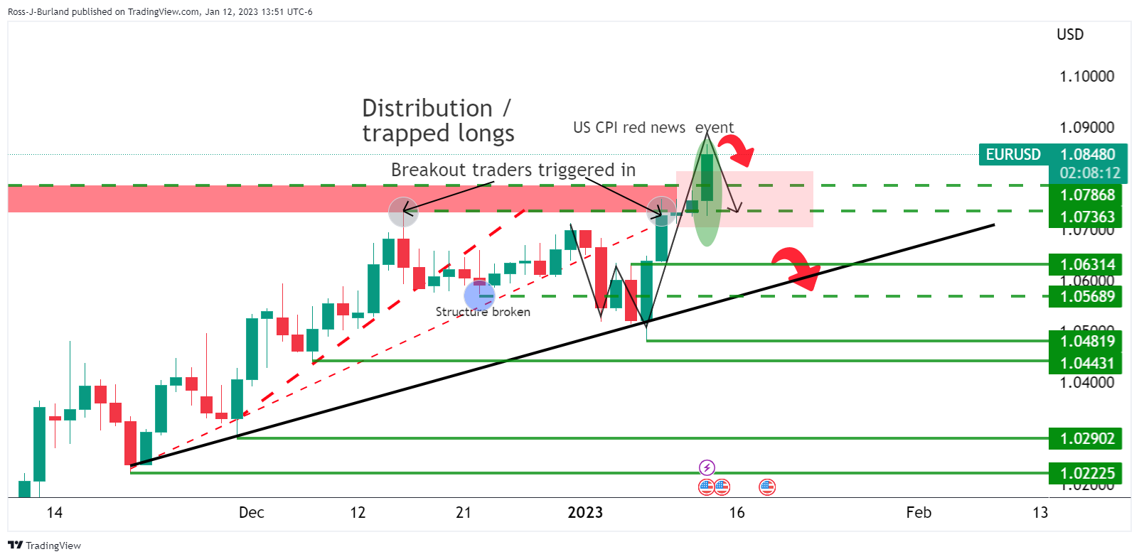 按照前期分析,欧元/美元价格分析:多头可能会进入陷阱,有人解释说,押注突破的交易者在消费者价格指数事件之前得到触发,介入市场。然而,美国通胀引发欧元/美元反弹突破1.0800,并可能在1.0850区间内触发止损位。继美国通胀公布后的技术分析,这為后市欧元/美元反转打??空间,欧元/美元刷新看涨周期高点,有望展??為期5天的反弹。