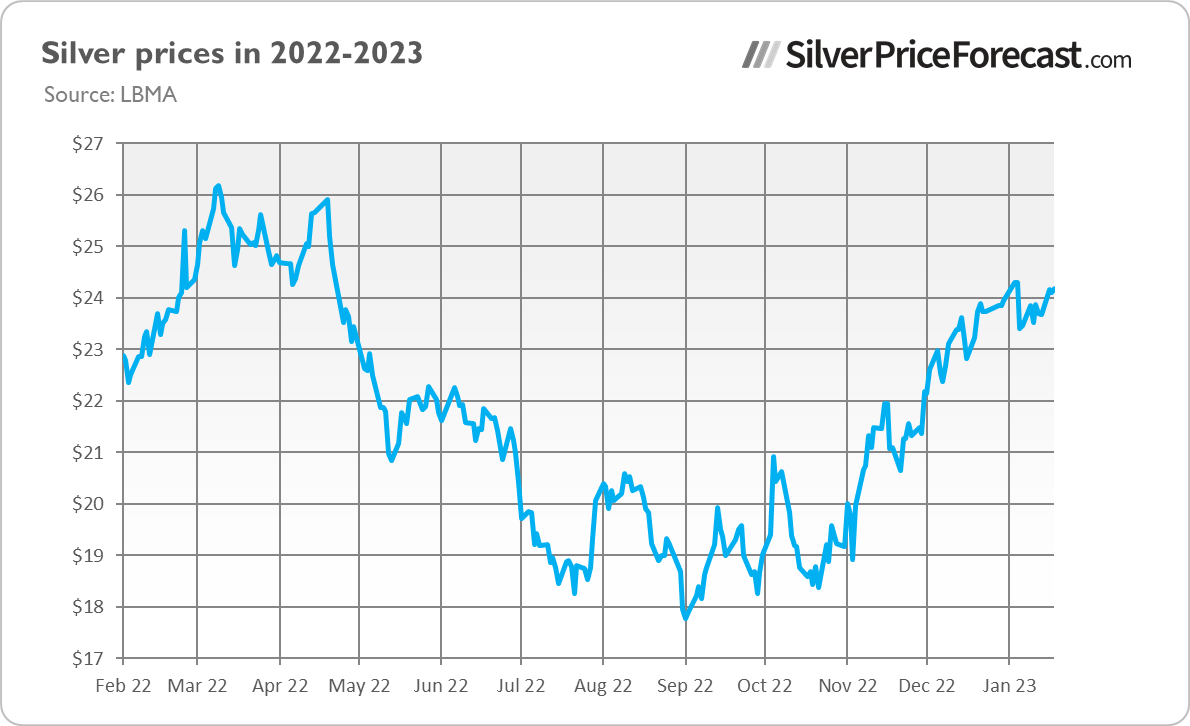 这一切对2023年的白银(和黄金)前景意味著什麽?嗯,通货膨胀率的下降和经济势头的减弱意味著美联储在提高利率方面可能会变得不那麽激进。任何更為温和的货币政策迹像都应该对白银有利,并支持始于2022年11月的上涨趋势。此外,随著美国经济失去动能,对经济衰退的担忧应该会加剧,这也可能增强对贵金属的避险需求。