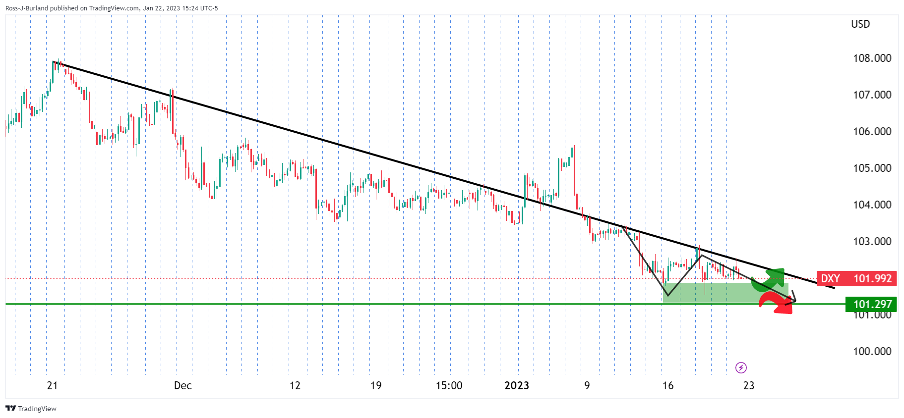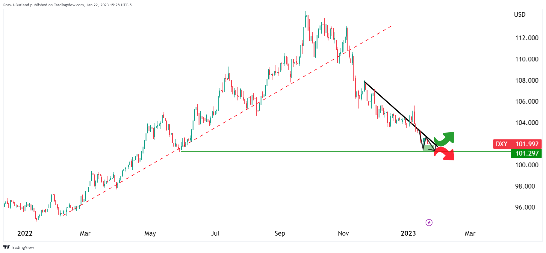 美元现在正处于一个十字路口,承压于阻力趋势正面,低位101.30是未来一周潜在关键水平。 endline with 101.30 lows in sight as a potential death-line for the?week ahead.?