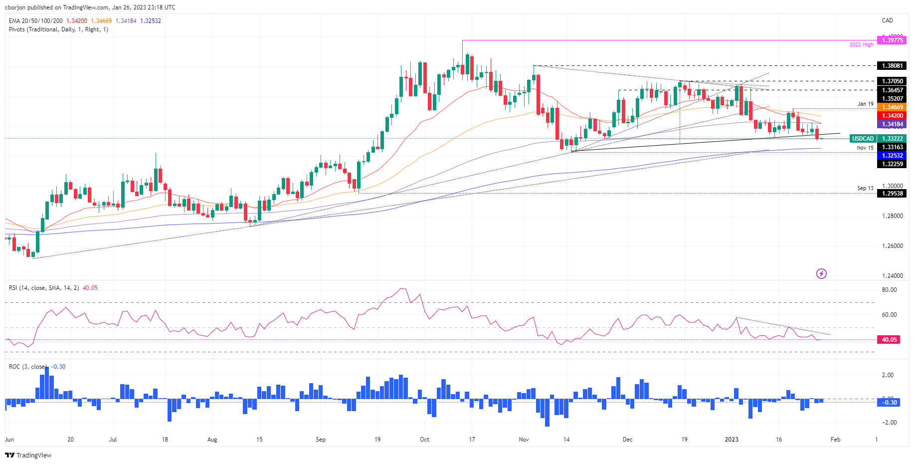 关键支撑水平将是1.3300。若跌破该位,汇价可能测试位于1.3253的200日EMA均缐。一旦清除该位,该货币对的下一个需求区域将是11月15日低点1.3225,然后為1.3200。