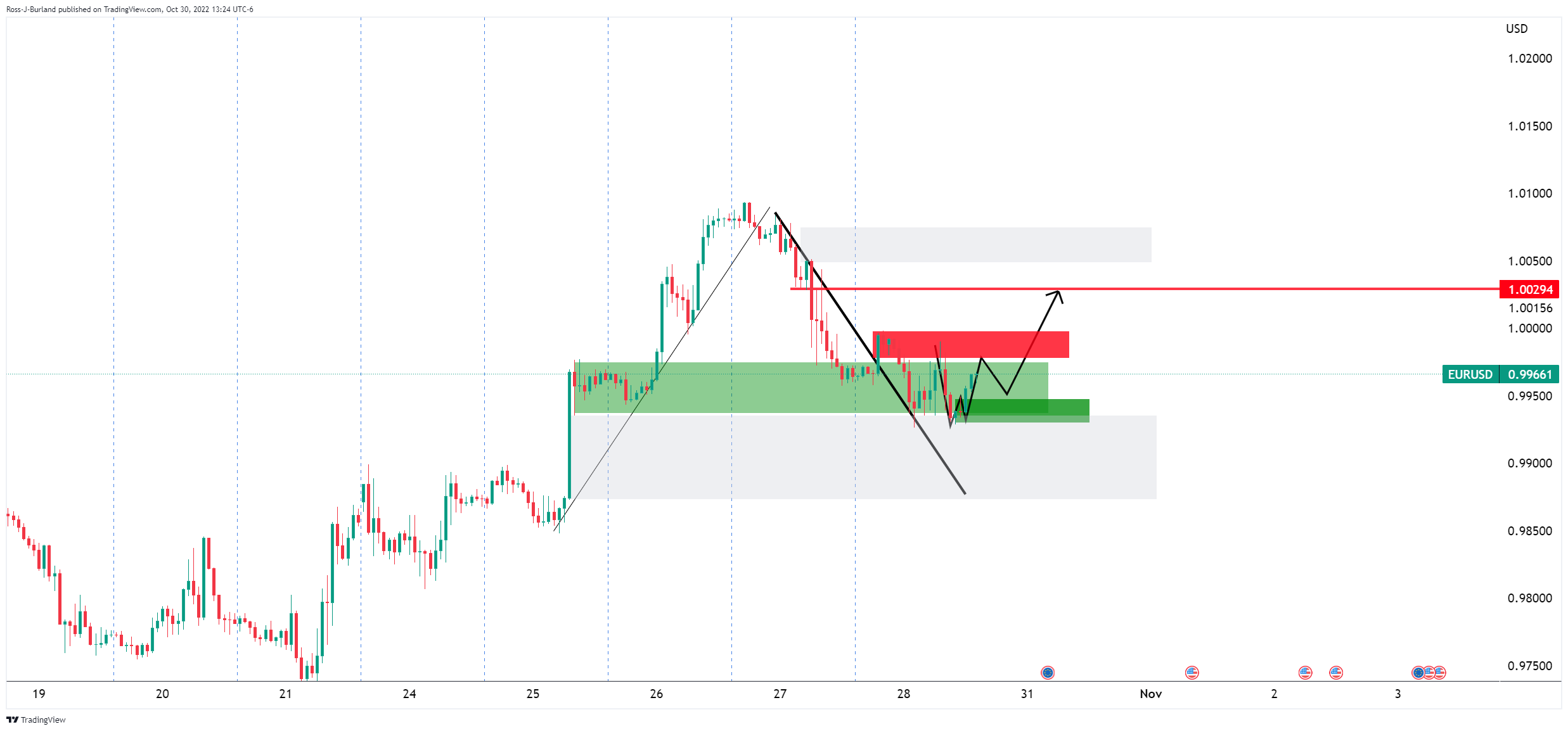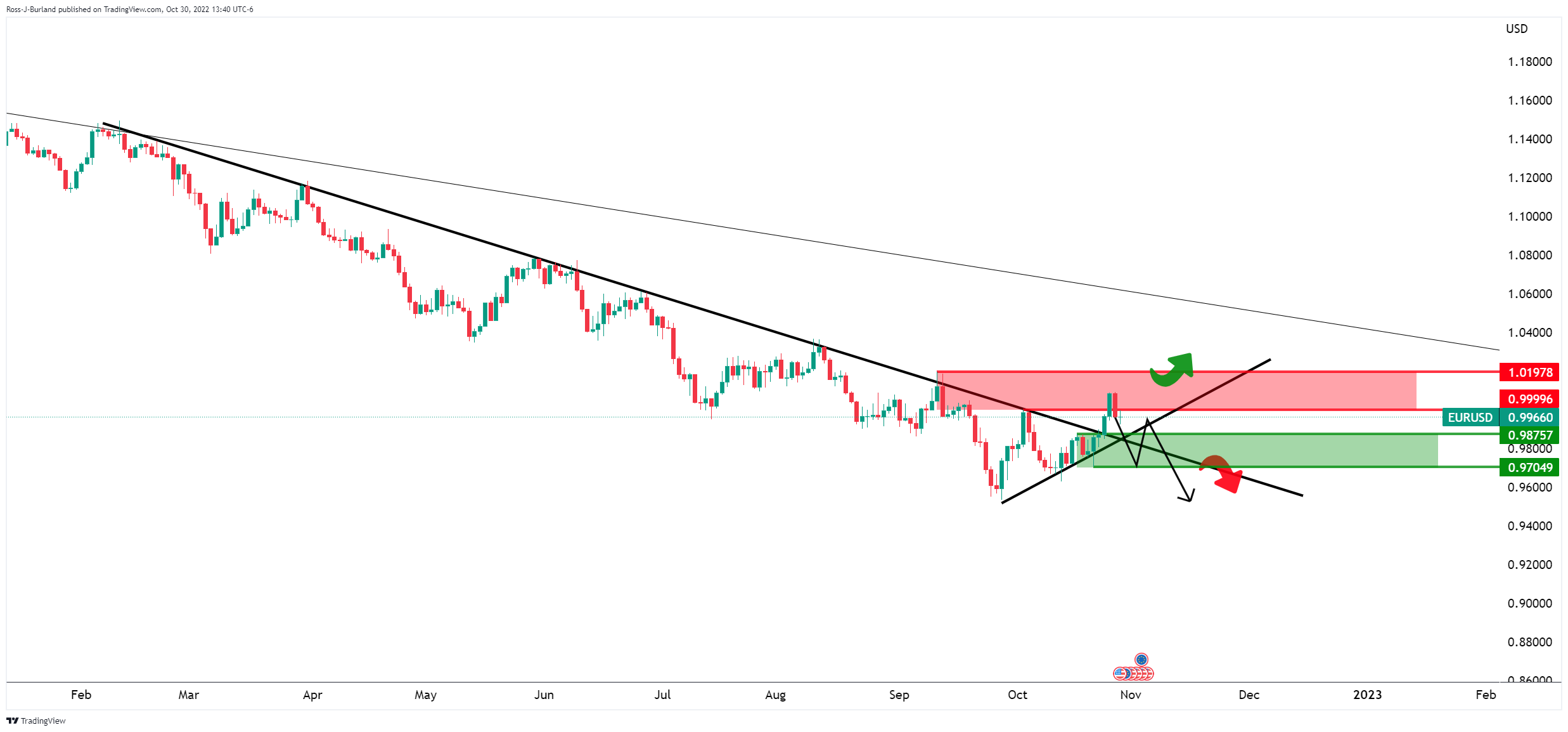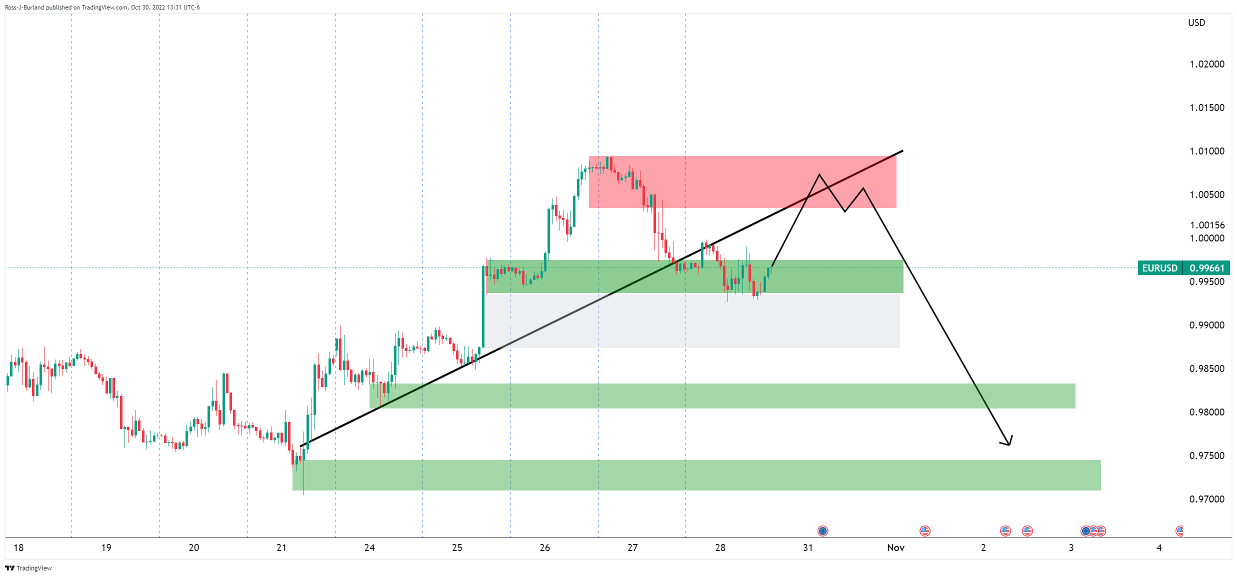 另一方面,如果多头随后未出现走强,并跌破近期高点 1.0090 后,美联储决议后欧元/美元可能会延续跌至 0.9750: