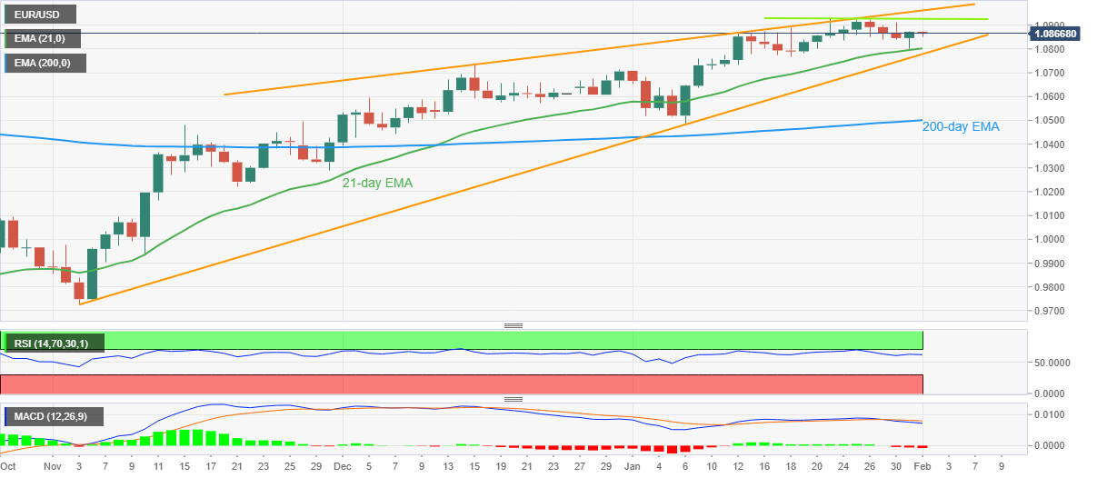 - 200日EMA均缐充当额外的关键支撑位,而多头需要突破1.0965才能扩大涨势
