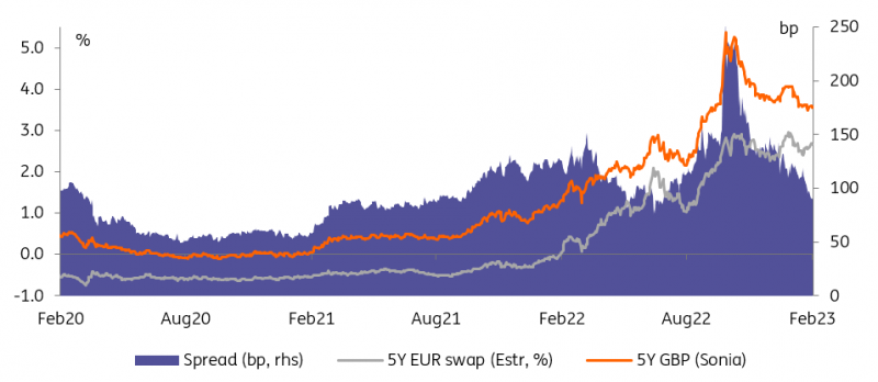 我们预计,在今天的央行会议之后,英镑和欧元掉期利率将进一步趋同