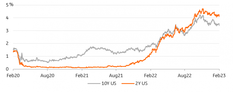 利率指导:欧洲央行在每次会议的基础上做出决定,但仍在当前条件下提供利率展望。这一指导方针应该是今天的主要焦点。去年12月,欧洲央行暗示“利率仍将不得不以稳定的速度大幅上升”,行长克里斯蒂娜?拉加德(Christine Lagarde)在新闻发布会上明确表示,人们应该预计“在一段时间内以50个基点的速度”加息。市场基本上同意我们关于3月份再加息50个基点的看法,预计届时美联储将再加息94个基点。此后,加息步伐放缓,7月会议共降息153个基点,即存款利率达到3.5%的峰值。